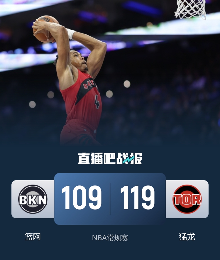 猛龙(12-5): 巴恩斯17分7板4助2断4帽、巴雷特16分2板1助2断、沃尔特16分1板、英格拉姆14分6板4助2断、奎克利13分7板4助、马穆凯拉什维利12分4板2助、迪克12分1板3助2断、谢德11分1板9助、阿巴基6分2板2助、博伊尔斯2分1板1助